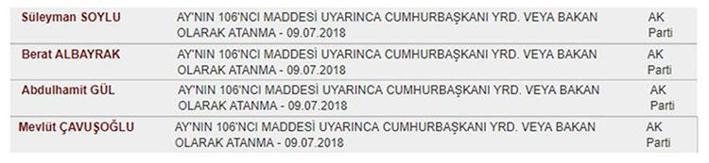 İstifalarla birlikte ak parti nin meclisteki sandalye sayısı 290 a düştü. Sandalye dağiliminda son durum. İşte meclis te son durum cumhurbaşkanı recep tayyip erdoğan ın açıkladığı kabine de yeniden bakanlık koltuğuna oturan abdülhamit gül berat albayrak süleyman soylu ve mevlüt çavuşoğlu milletvekilliğinden istifa etti. Uysal seçime i̇yi̇ parti listelerinden girmişti.