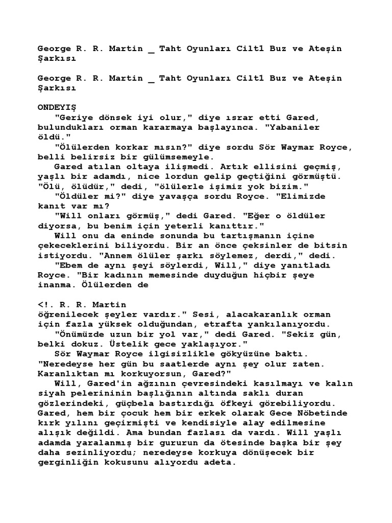 George R R Martin Taht Oyunlari Cilt1 Buz Ve Atesin Sark
