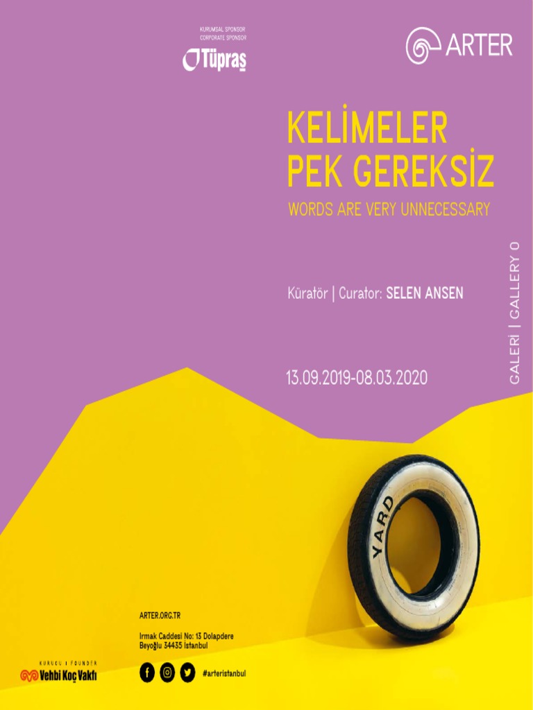George brecht sandalye olayları 1969. Arter sergi programı etrafındaki tartışmaları beslemeyi ve teşvik etmeyi amaçlayan yayınlar sunmayı sürdürecek. Yeni binadaki yayın programı kapsamında sanatçılara ve sergilere odaklı yayınların yanında koleksiyondaki yapıtları ve koleksiyon. Kelimeler pek gereksiz sergiden görünüm arter 2019.